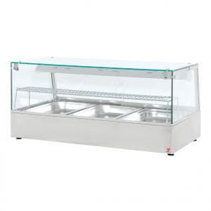 Είναι εξοπλισμένη με 3 λεκάνες G/N 1/1 – 65mm & Θερμοστάτη 90C