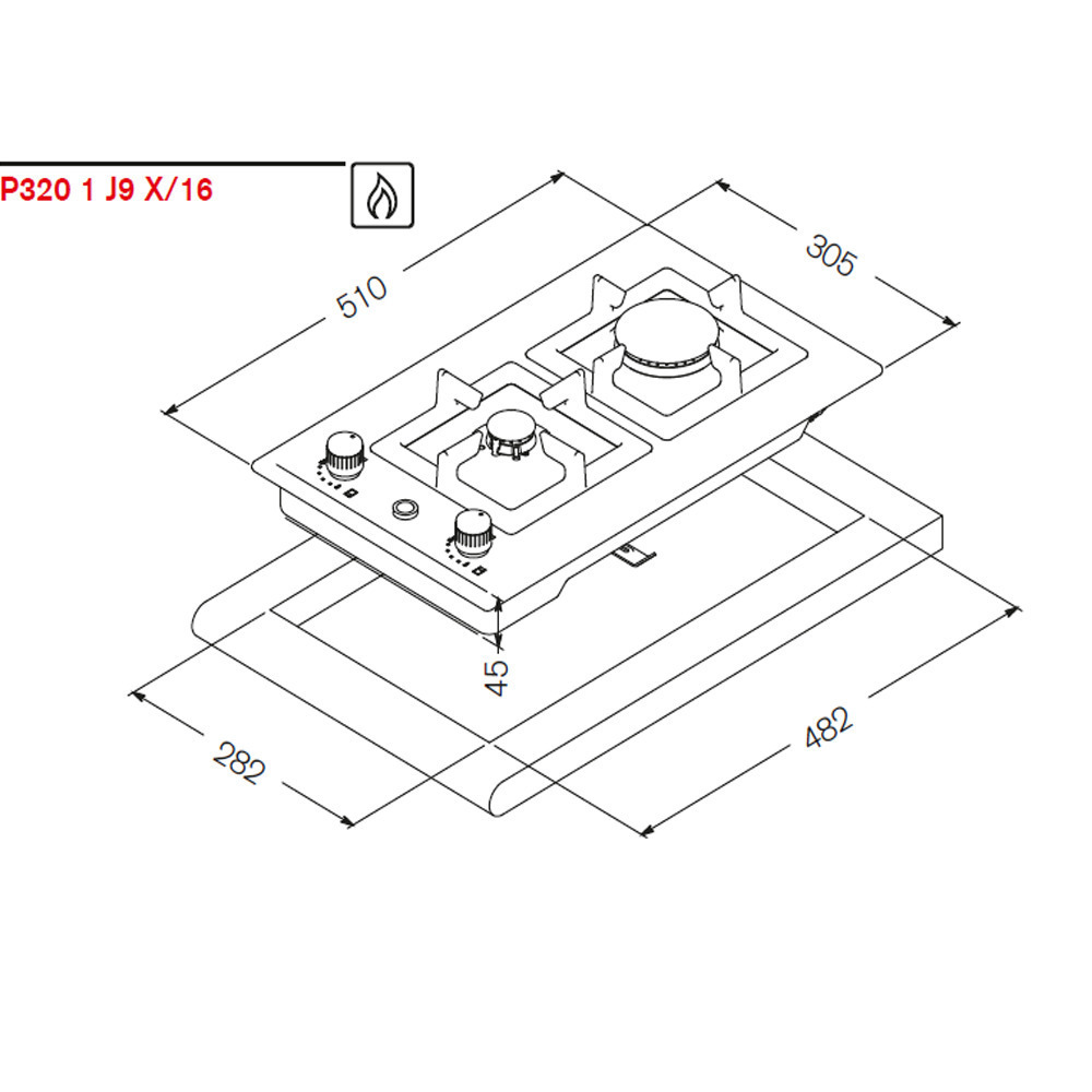 Διαστάσεις κοπής πάγκου (ΠxΒ) 282 x 482 χιλ.